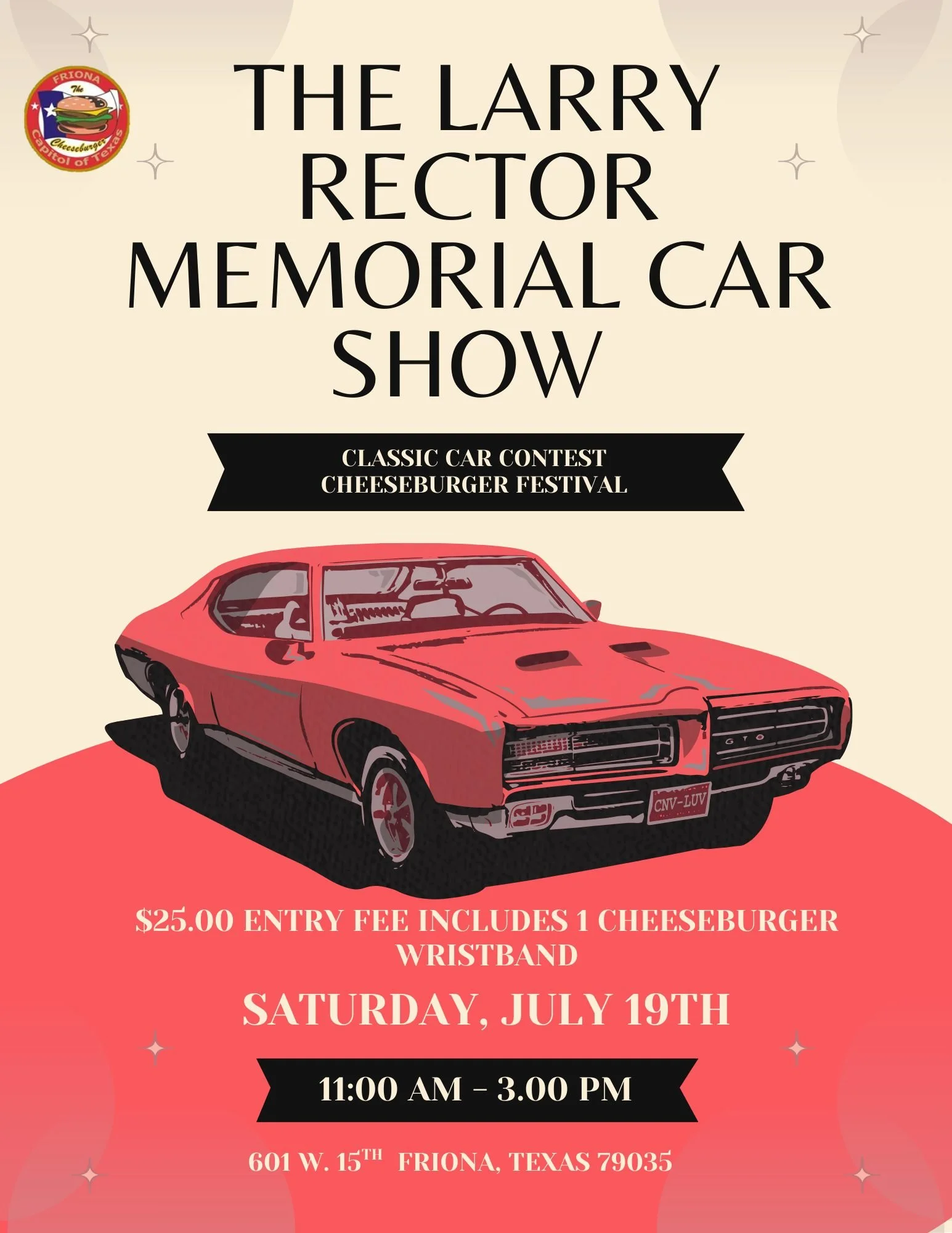 Mark your calendars! The 19th Annual Cheeseburger Festival & Cook-Off will be soon! Come out and enjoy Cheeseburgers in the Cheeseburger Capital of Texas! Bring family and friends for good food, music and fun!